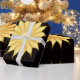 El diseño del Kaleidoscope Navidad amarillo brillante estrella en fondo negro