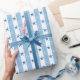 Papel De Regalo Estrella de mar azul y rayas blancas playa sin cos