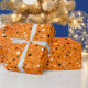 Papel De Regalo estrellas blancas y negras en naranja