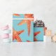 Papel de embalaje anaranjado rojo costero náutico de las estrellas de mar con un color de fondo azul ciánico. ¡Grande para los proyectos del decoupage!