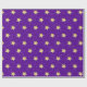 Papel De Regalo Estrellas De Oro En Morado Con Copos De Nieve