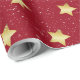 Papel De Regalo Estrellas De Oro En Rojo Con Copos De Nieve
