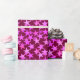 Papel envuelto en una moderna imagen geométrica, con estrellas dispersas en tonos rosa pálido, orquídea y fucsia sobre un fondo de vino burdeos profundo
