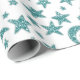 Papel De Regalo Estrellas Luna Sparkly Verde azulado Aqua Blue Whi