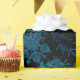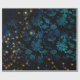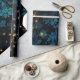Papel de envoltura de damasco azul profundo, verde azulado y morado con estrellas doradas luminosas.