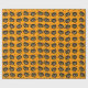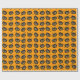 Este rollo de papel de envoltura es un naranja cubierto de pequeñas estrellas negras y las cabezas de gatos negros de Halloween vintage con caras sonrientes y acentos naranjas y blancos.