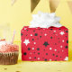 Estrellas blancas y negras sobre fondo rojo. Se puede cambiar el color de fondo.