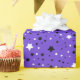 Estrellas blancas y negras sobre fondo morado. Se puede cambiar el color de fondo.