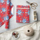 Papel De Regalo Estrellas y copos de nieve rojos y azules de vacac
