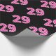 Este divertido diseño de papel envolvente presenta el número "29" con un patrón de rayas rosa oscuro y rosa claro, sobre un fondo de color negro. El papel de envolver como este se puede usar cuando se envuelven regalos para celebrar el 29 aniversario de alguien, el 29 aniversario de un boda de una pareja, o algún otro 29 aniversario o hito. [~Z0000379]