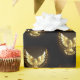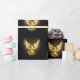 Paloma voladora de oro sobre un fondo negro.