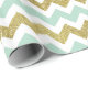 Papel De Regalo Falso purpurina Chevron de la menta y del oro