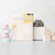 La hoja de envolver de regalo es tan tierno y muy cursi Patrón de la familia del ratón, mamá, papá, hijo e hija cada uno con su rebanada de queso, con un fondo blanco texturado para el contraste. Ilustracion por Suki's, todos los derechos reservados.