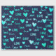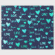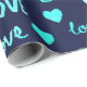 Papel De Regalo Fancy Heart Ocean Blue Navy Purpurina Love Valenti