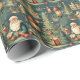 Navidades vintage, retro envolviendo papel con Santa Claus, árboles de Navidad decorados, hermosas linternas callejeras, brillantes estrellas bonitos, luces y adornos navideños todo sobre un bello fondo rústico verde. Contenido generativo