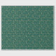 Este papel de envoltura está decorado con letras de color dorado a mano de la Feliz Navidad, estrellas y copos de nieve sobre un fondo acuático verde-verde azulado.