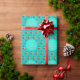 Papel De Regalo Faux Gold Merry Christmas Tree Pattern Turquoise