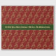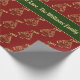 Patrón de árbol de Navidad Faux Oro Rojo Fondo Verde Diseño Cinta Elegante Navidades Regalo Papel de envolvimiento con texto personalizado "¡Te deseamos una Feliz Navidad! Con amor, la familia Williams", puedes cambiar o borrar el texto