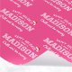 Prepárate para Navidades con papel de envoltura de nombres personalizado! Este diseño festivo presenta una tipografía inspirada en jersey deportiva, con un tipo de letra de bloque retro, un sombrero Santa y estrellas. Personalice la plantilla con el nombre del destinatario, el año, además puede personalizar de la frase 'Chill and be merry' con su propio mensaje de vacaciones. Este diseño sencillo y elegante es perfecto para niños, adolescentes, familias y amigos. Un envoltorio de regalo sin inconvenientes, disponible con un acabado brillante o mate. Colores impresos: rosa, rojo y blanco.