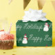 Felices vacaciones texto en diseño de cuerda y muñeco de nieve sobre fondo verde. Se puede cambiar el color de fondo.