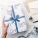 Papel De Regalo Felices Fiestas Script Nombre Azul Blanco Invierno