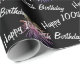 Feliz texto de cumpleaños número 100 con fuegos artificiales en negro. El color de fondo y el mensaje se pueden cambiar.