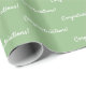 Elegantes y clásicas hojas de papel de regalo para fiestas. Un fondo verde menta, texto blanco: ¡Felicidades!