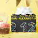 Este divertido diseño de papel envolvente con temática de cumpleaños presenta un gran número "12", lleno de un patrón de formas estrella con varios colores y tamaños. También incluye el mensaje "Feliz cumpleaños número 12", y un nombre personalizado. El fondo es negro de color. Papel de envoltura divertida como este podría ser usado cuando se le dan regalos al envasado a alguien en celebración de su duodécimo cumpleaños. [~Z0000429]