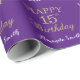 Papel De Regalo Feliz 15 cumpleaños Purpurina de oro y morado