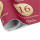 Papel De Regalo Feliz 16º cumpleaños Borgoña Purpurina rojo y oro