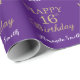 Papel De Regalo Feliz 16 cumpleaños Purpurina de oro y morado