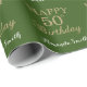 Papel De Regalo Feliz 50 cumpleaños Purpurina de oro y verde