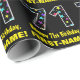 Este divertido diseño de papel de envoltura con temática de cumpleaños presenta un gran número "71", lleno de un patrón de estrellas decorativas con varios tamaños y colores. También incluye el mensaje "Feliz cumpleaños número 71", y un nombre personalizado. El fondo es negro de color. Papel de envoltura divertida como este podría ser usado cuando se le dan regalos al envasado a alguien en celebración de su cumpleaños setenta y uno. [~Z0000429]