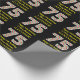 Este sencillo y divertido diseño de papel de envoltura de Navidades con tema de cumpleaños el 25 de diciembre presenta un gran número "75" con un patrón de rayas verdes, blancas y rojas, junto con el mensaje "Feliz cumpleaños 75 y Feliz Navidad", y un nombre personalizado. El fondo es negro de color. Envolver papel como este podría ser una manera divertida de envolver regalos que se le están dando a alguien que nació el Día del Navidad (25 de diciembre) y que está celebrando su cumpleaños setenta y cinco. [~Z0000406]