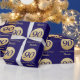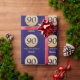 Feliz 90 aniversario de la Marina Azul y Purpurina de oro Papel envuelto con nombre personalizado. Para una mayor personalización, haga clic en el botón "Personalizar" y utilice nuestra herramienta de diseño para modificar esta plantilla.