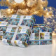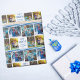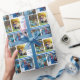 Este lindo y moderno documento de envoltura Happy Hanukkah presenta un diseño elegante de 4 fotos familiares sobre un fondo blanco con tipografía azul bonito. Esta hermosa foto de los niños de Chanukah regalo envuelto presenta el collage de fotos de tu propio hijo que rodea tu mensaje y nombre de familia.