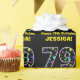 Este divertido diseño de papel envolvente con temática de cumpleaños presenta un gran número de "79" lleno de un colorido patrón de formas estelares, junto con el mensaje "Feliz cumpleaños 79", y un nombre personalizado. El fondo es negro de color. Papel envuelto como este puede ser usado cuando se le dan regalos a alguien en celebración de su 79 cumpleaños. [~Z0000429]