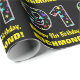 Este divertido diseño de papel envolvente con temática de cumpleaños presenta un gran número "91" lleno de un patrón de formas estelares decorativas con varios colores y tamaños, junto con el mensaje "Feliz cumpleaños 91", y un nombre personalizado. El fondo es negro de color. Papel de envoltura divertida como este podría ser usado cuando se le dan regalos al envasado a alguien en celebración de su cumpleaños 91. [~Z0000429]