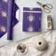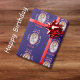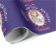 Elegante y elegante papel de envoltura personalizado de "feliz cumpleaños" con nombre personalizado de coquette bow y foto personalizado sobre fondo azul con estrellas diminutas doradas. Perfecto para un cumpleaños de chica.