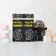 Este divertido diseño de papel de regalo con tema de cumpleaños presenta un gran número "96", lleno de un patrón de formas de estrellas decorativas de varios tamaños y colores. También incluye el mensaje "Feliz cumpleaños número 96," y un nombre editable. El fondo es de color negro. El papel de regalo con tema de cumpleaños como este podría usarse al dar un regalo o presente en celebración del cumpleaños número noventa y seis de alguien. [~Z0000429]