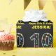 Este divertido diseño de papel de envoltura con temática de cumpleaños presenta un gran número "10" lleno de un patrón de formas estelares decorativas con varios colores y tamaños, junto con el mensaje "Feliz décimo cumpleaños", y un nombre personalizado. El fondo es negro de color. Papel de envoltura con temas de cumpleaños como este puede ser una manera divertida de envolver un regalo o regalar un regalo para celebrar el décimo cumpleaños de alguien. [~Z0000429]