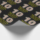 Este divertido y sencillo diseño de papel de envoltura con temas de Navidades y cumpleaños el 25 de diciembre presenta un gran número "10" con un patrón de rayas verdes, blancas y rojas, junto con el mensaje "Feliz décimo cumpleaños y Feliz Navidad", y un nombre editable. El fondo es negro de color. El envolvimiento de papel como este podría ser usado cuando se envuelven regalos o regalos que se dan a alguien cuyo décimo cumpleaños cae el 25 de diciembre (Día del Navidad). [~Z0000406]