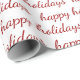 Patrón de 'Felices Fiestas' en rojo sobre fondo blanco.
