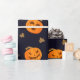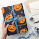 Personalizado Feliz Halloween Jack O Lantern Pattern Funny Scary Naranja Patrón de calabaza, elegante papel de envolvimiento de regalo de Halloween, puedes cambiar o borrar el texto