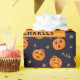 Personalizado Feliz Halloween Jack O Lantern Pattern Funny Scary Naranja Patrón de calabaza, elegante papel de envolvimiento de regalo de Halloween, puedes cambiar o borrar el texto