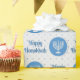 Aquí tenemos un papel de envoltura que presenta un círculo azul celeste con una menorah sobre él, y las palabras Feliz Hanukkah en azul sobre un fondo con múltiples punteros de polka azul y gris. Este artículo está disponible en varios tamaños y es una coincidencia con otros papeles de envoltura, papeles de papel tisular, bolsas de regalo y una tarjeta de saludo. Esto hará que su regalo sea una adición perfecta para esta temporada de vacaciones.