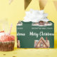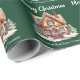 Este bonito papel de regalo de Navidad personalizado para agentes inmobiliarios tiene el nombre de su compañía de bienes raíces y el mensaje de Felices Fiestas en tipografía verde elegante junto con una hermosa imagen de una casa en invierno rodeada de pinos. Envoltura de regalo profesional para marketing de negocios inmobiliarios.