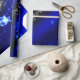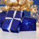 Feliz Navidad Blue Stars Bauble Ornaments Gift Wrapping Paper, puedes cambiar el texto