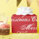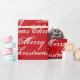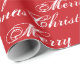 Feliz Navidad, papel de envoltura de regalo elegante, patrón de caligrafía de escritura roja y blanca. Personalizable de texto negro sobre fondo blanco.