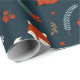 Envuelve tus regalos de vacaciones con este Navidad envuelto de papel con zorro lindo, copos de nieve, ramas de abeto y bayas Holly sobre fondo azul. Tus regalos se verán extra alegres bajo el árbol de Navidad.